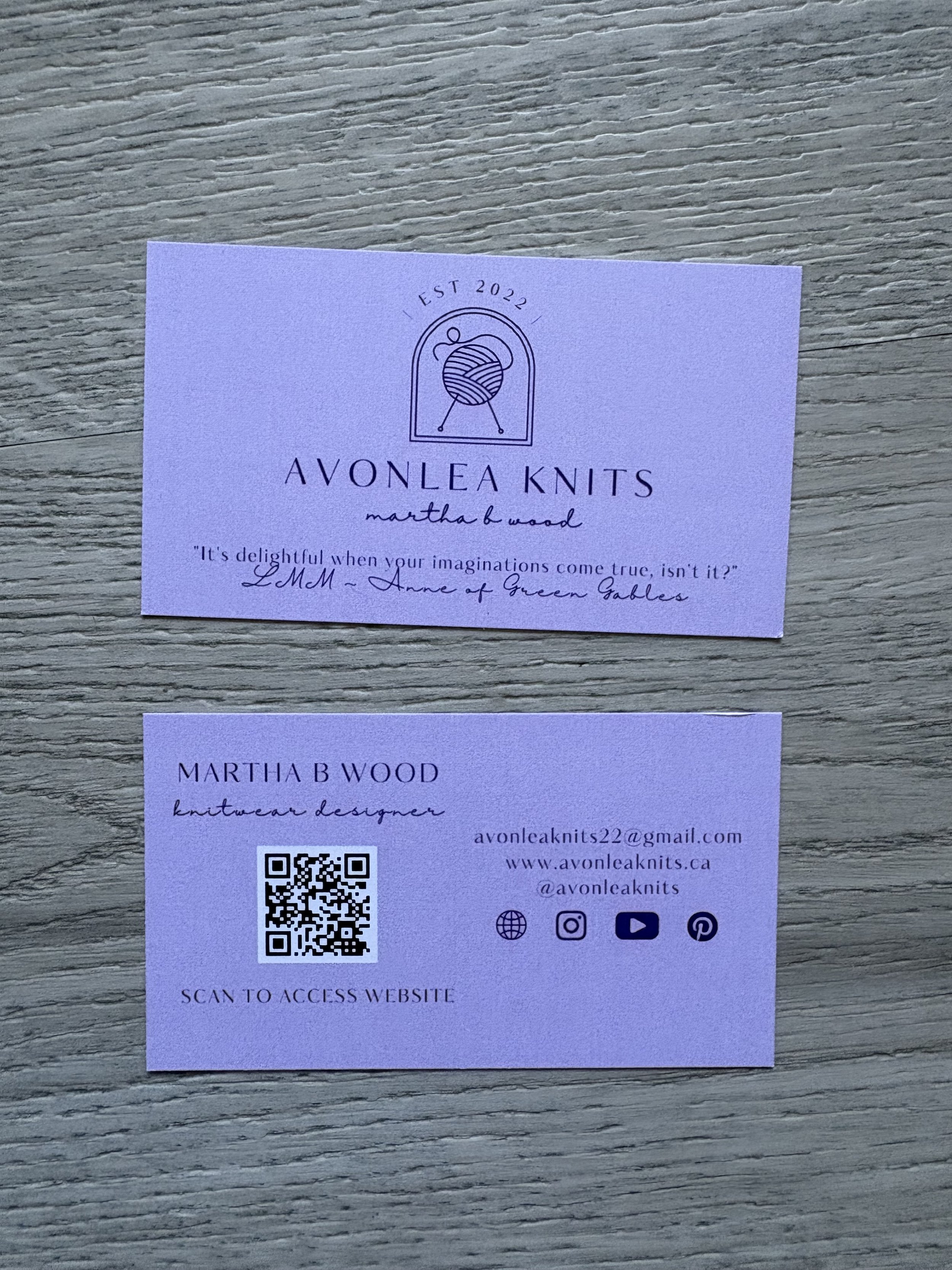 Avonlea Knits Business Cards